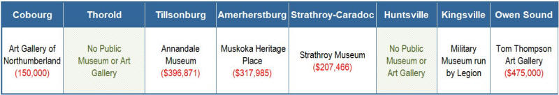 Six of the eight municipalities in the study group provided Cultural Services in the form of Museums or Art Galleries in 2021. The average of the two primary comparators that provide Cultural Services is $273,436. With a cost of $450,000, Owen Sound 's costs for the Art Gallery were close to double the average of the primary comparators in 2021. Therefore to some extent our Art Gallery does contribute to our expenses problem. However, when you consider our expenses are $11 million above average, the Art Gallery excessive expense does not significantly contribute to the overall problem.