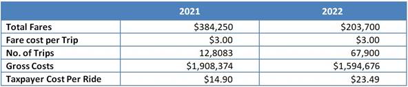 | Table 4; Comparing 2021 Transit Service Costs Source: 2021 Budget Statements 33 - 40 |