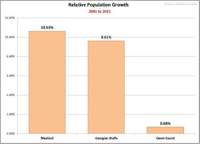 Theoretically there will be a time when both Georgian Bluffs and Meaford have greater populations than Owen Sound. Just think about that for a minute – Owen Sound will be smaller than Meaford at some time in the future if things continue on the same path.
